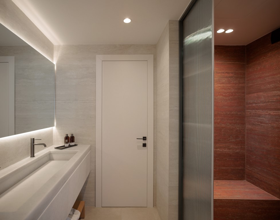 The architectural vision was centered on creating a dialogue between built space and natural setting, with a particular focus on the nearby lagoon. Two shallow, organically shaped water elements punctuate key areas of the resort—adjacent to the restaurant, and at the heart of the complex. These features serve not only as contemplative resting points but also enhance the microclimate by offering passive cooling and gentle humidity.