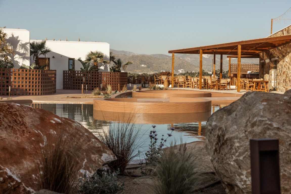 Laguna Coast Resort in Laguna, Naxos, is a refined five-star retreat of 21 suites where luxury meets sustainability and the philosophy of slow living. Thoughtfully integrated into the natural landscape, the resort celebrates the island’s heritage with a design that flows effortlessly between sea views, ancient hills, and tranquil water features. Organic pathways, artificial lagoons, and serene courtyards shape an immersive environment. Crafted from local materials, the suites —some with private pools— offer understated elegance and comfort. Architecture and nature coexist in harmony, inviting guests into an experience of calm, beauty, and authentic connection.