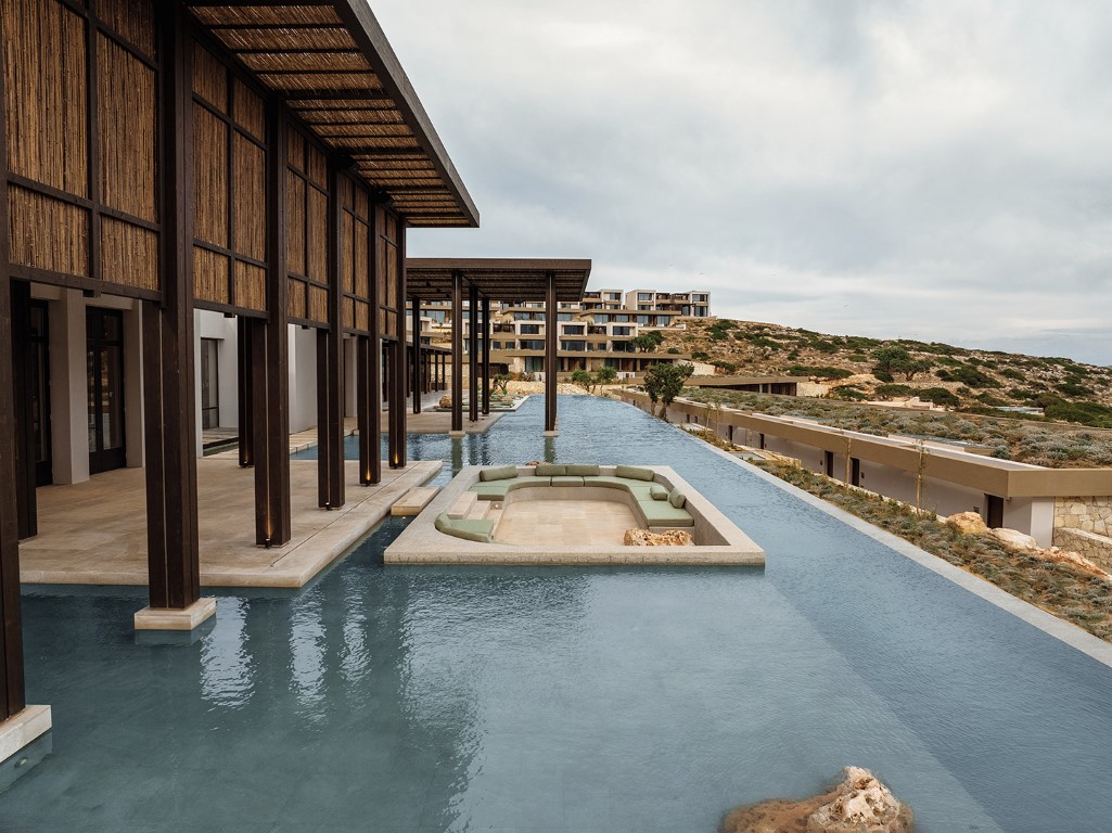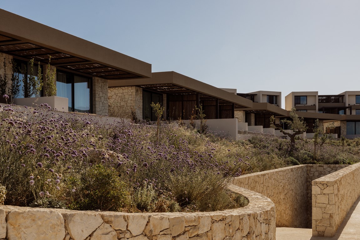 Block722's new 5-star resort for JW Marriott in Marathi, Crete is a benchmark for sustainable Mediterranean hospitality. Set on the steep hillside above Souda Bay, the project combines contemporary architectural precision with the spirit of the Cretan landscape. Spanning 59,700 sqm and accommodating 450 guests in 160 rooms and suites, the resort incorporates traditional elements, regenerative design strategies, and local craftsmanship to form an authentic experience for guests. Passive and active environmental systems - from green roofs and photovoltaic panels to native plantings and locally sourced stone - allow the resort to minimize its footprint while enhancing the biodiversity of its region. A respectful blend of tradition and innovation, this landmark development exemplifies Block722's ethos: refined simplicity, environmental integrity, and restorative luxury.