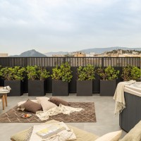 The recent renovation was carried out with sustainable practices, harmonizing the space with the industrial character of the neighborhood. The modern aluminum façade enhances the property's urban aesthetic. Amenities include a gym and a rooftop terrace with panoramic views of the Acropolis.