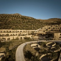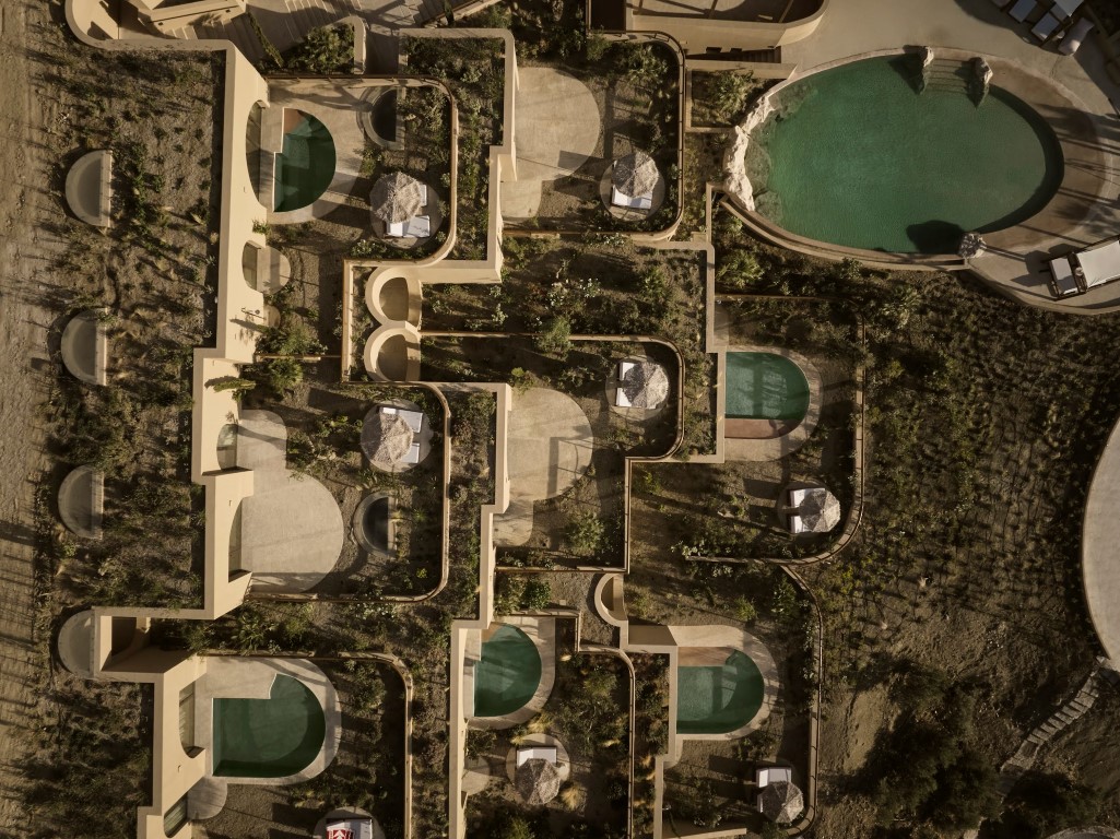 Tella Thera is a biophilic wellness retreat nestled in an ancient olive grove in Kissamos, Crete. Designed by Pieris.Architects, the resort merges sculptural architecture with environmental consciousness, embodying the philosophy of “Future Primitivism”—a design approach that fuses ancestral wisdom with contemporary technology to create spaces that feel both timeless and forward-looking. Its 21 suites blend into the sloped terrain, using local materials, passive cooling, and green roofs to enhance biodiversity and comfort. Powered by renewable energy, Tella Thera redefines luxury as conscious living, fostering mindfulness, well-being, and a deep connection to nature through art, architecture, and intentional design.