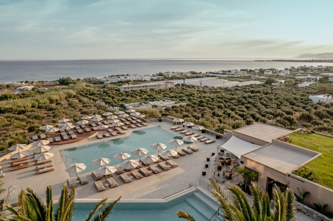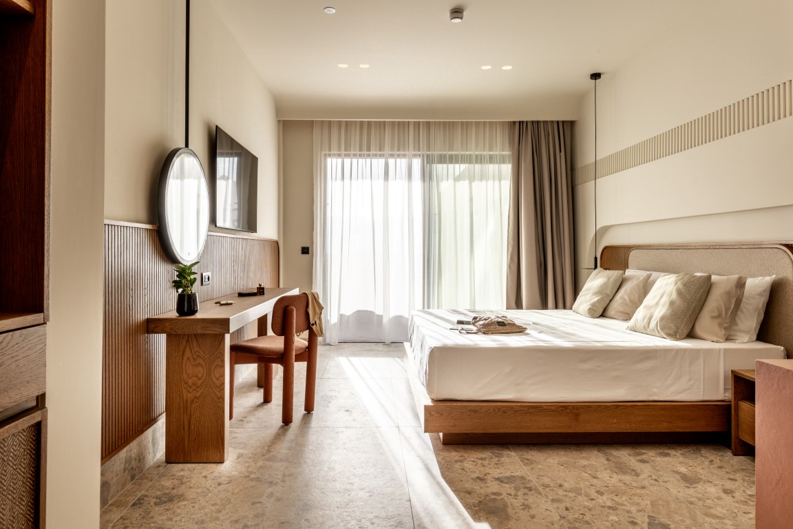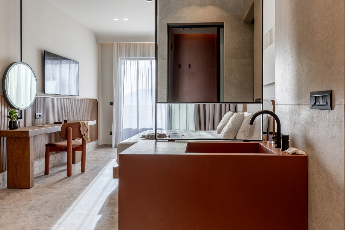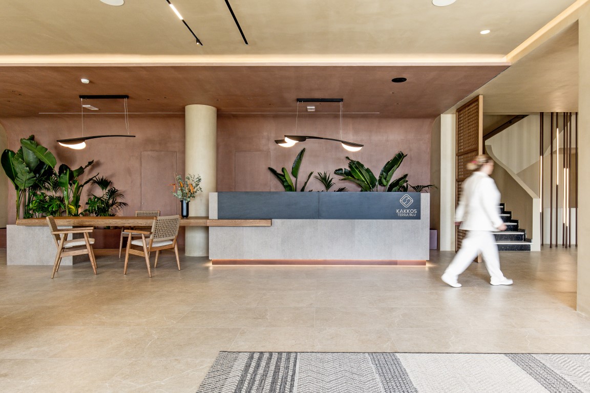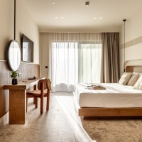 Cube Concept was assigned the renovation of Arion Hotel by Kakkos Collection, located just outside the city of Ierapetra in Crete. The aim of the design was a change of character for the existing hotel. Earth tones, warm wood colors and large water elements create a welcoming and cozy atmosphere for the new hotel. New spaces are added to the masterplan, while the existing ones re-introduce themselves through the new interior and exterior design. All the rooms are renovated with open plan bathrooms, timeless design and large terraces focusing on privacy and the view.