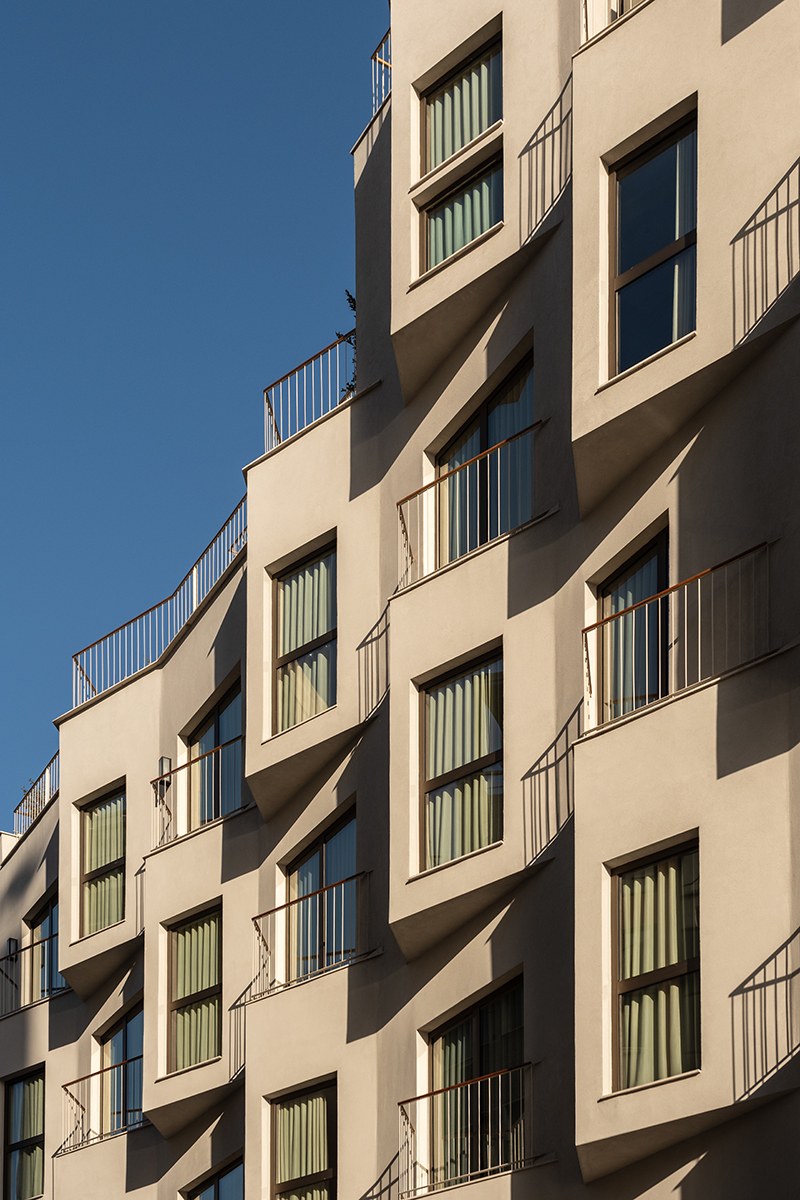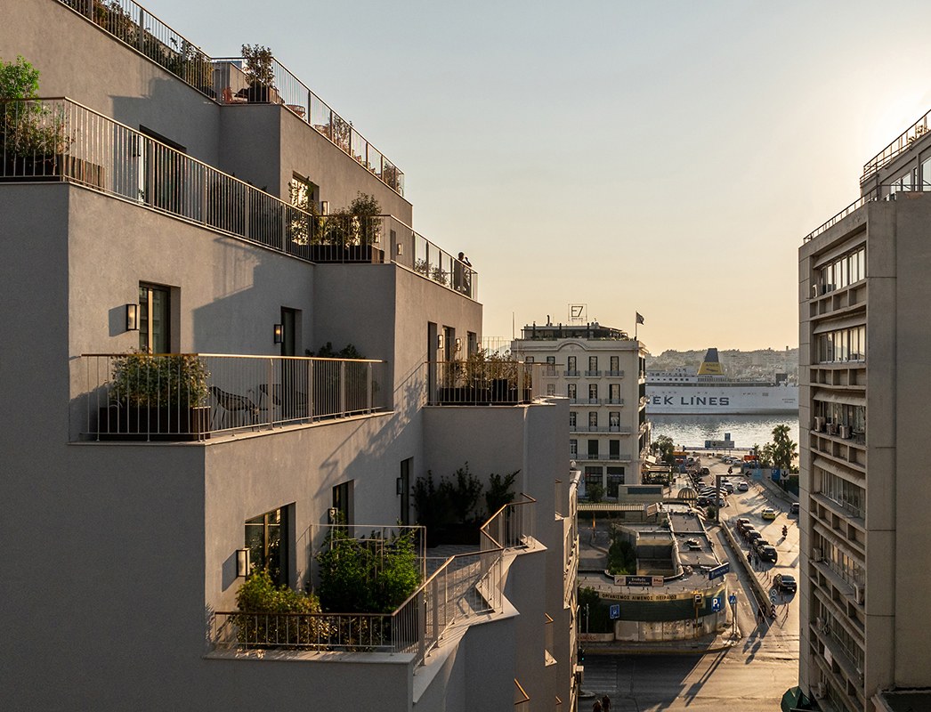 The design of the new shell aims to aesthetically and functionally upgrade the existing building. The triangular protrusions on the front façade, facing Aristeidou Street, were inspired by the desire to offer the best possible sea and port views from the rooms.