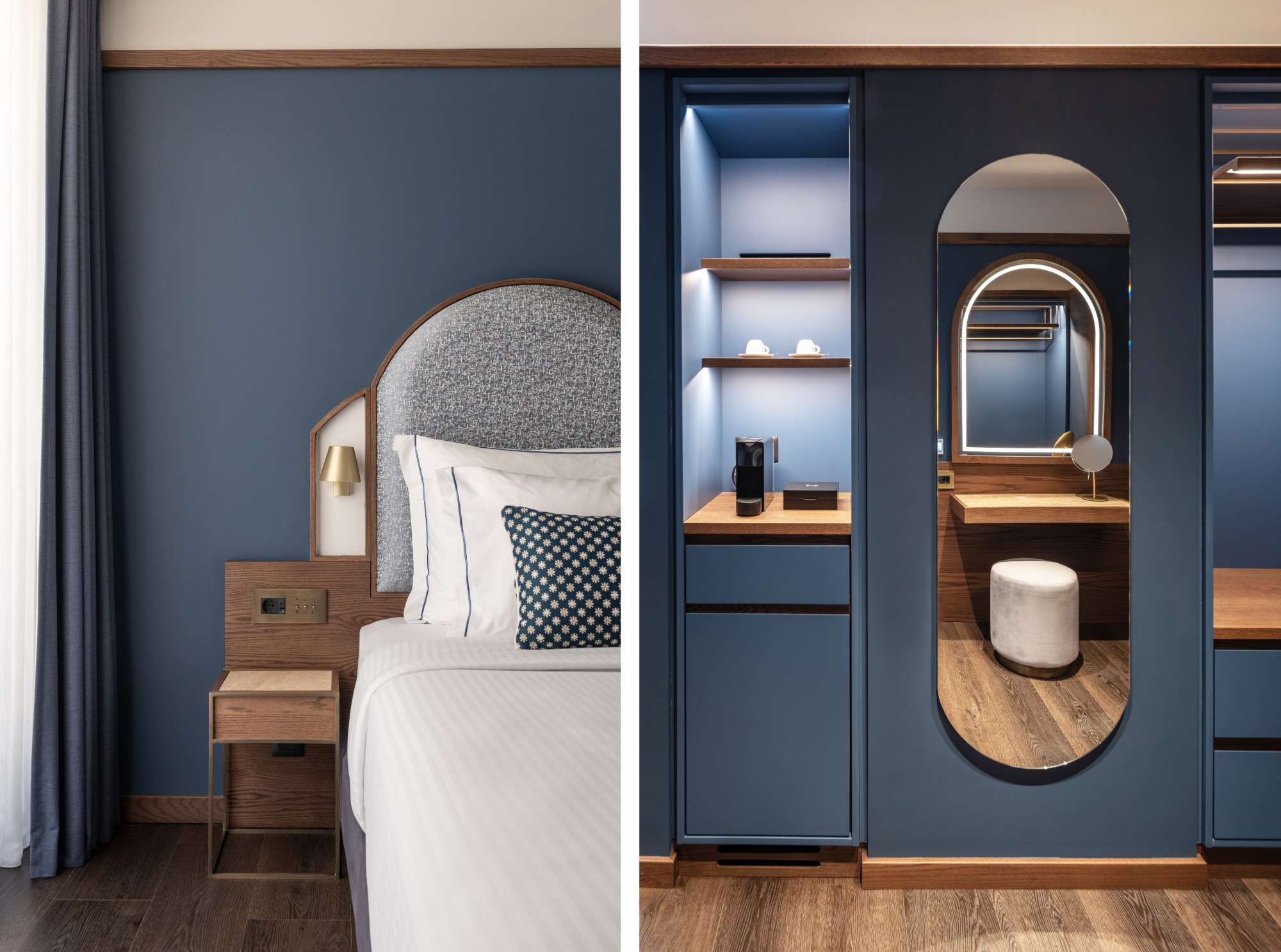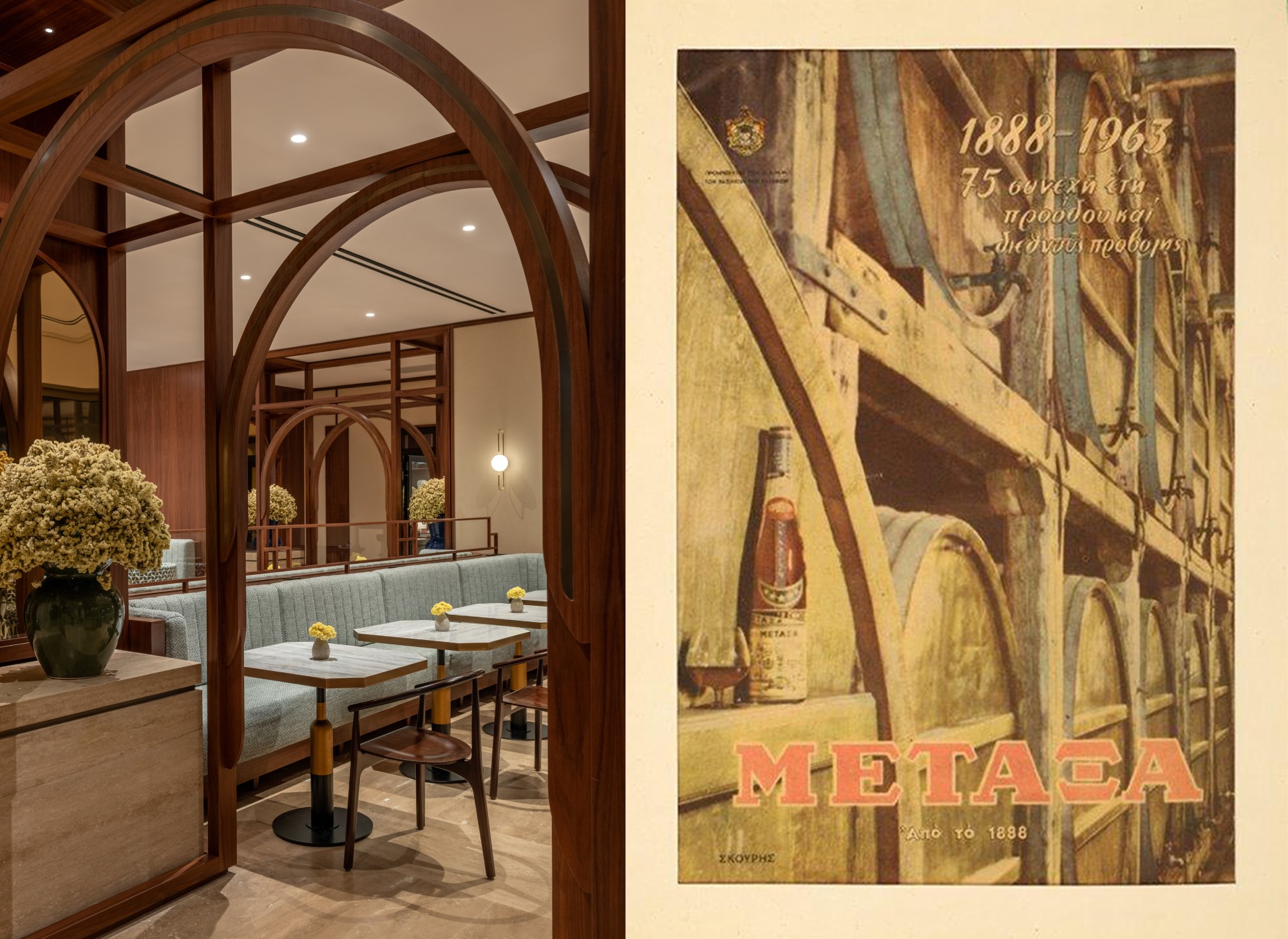 The color palette is inspired by the sea, the light, and the amber tones of Metaxa. Works by contemporary Greek artists enrich the interiors, offering a unique experience that blends history, art, and hospitality.