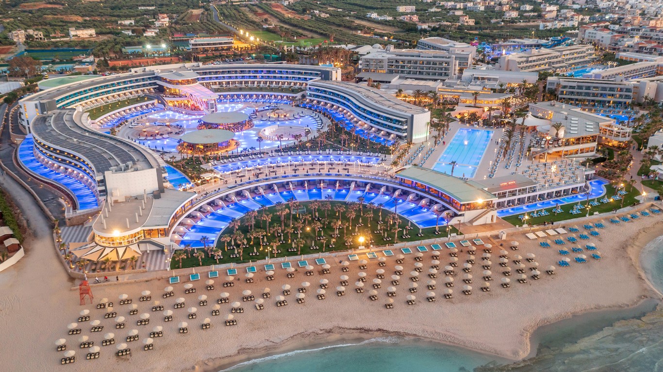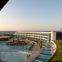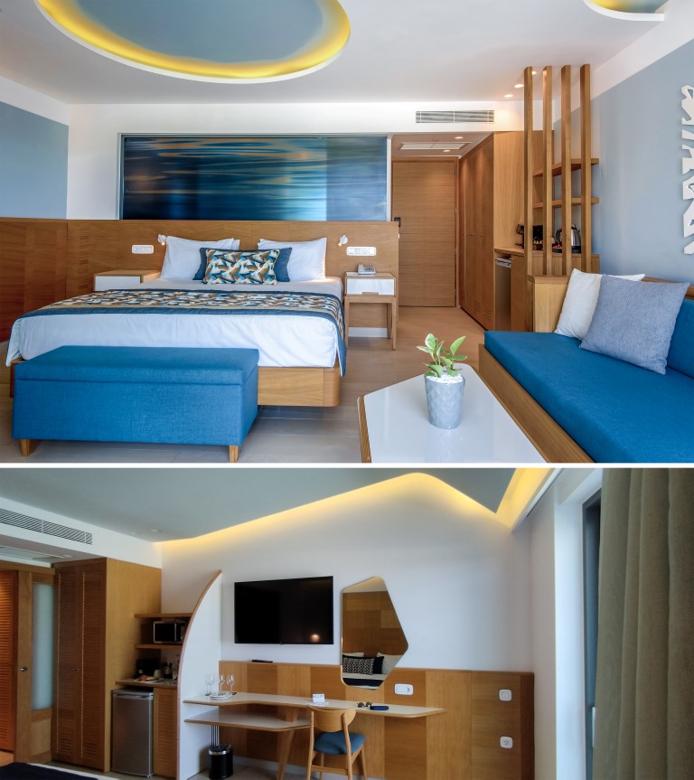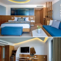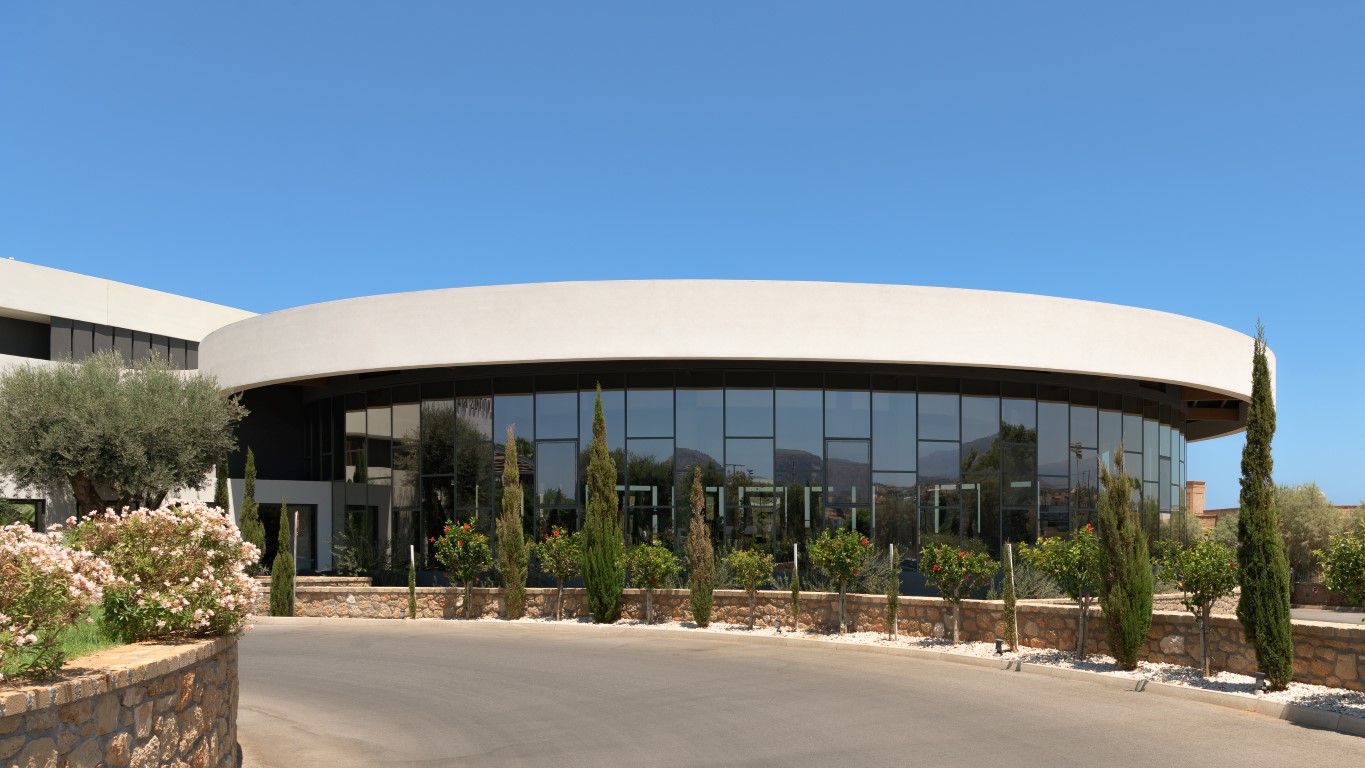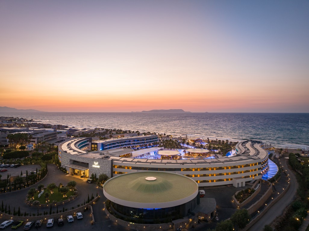 The architectural design of Lyttos Mare hotel focuses on creating an autonomous unit in conjunction with the amenities of the neighboring Lyttos Beach. Due to the limited sea frontage, an amphitheater-shaped layout resembling an "embrace" was adopted, extending the room frontage to 550 meters, ensuring sea views for all residents.