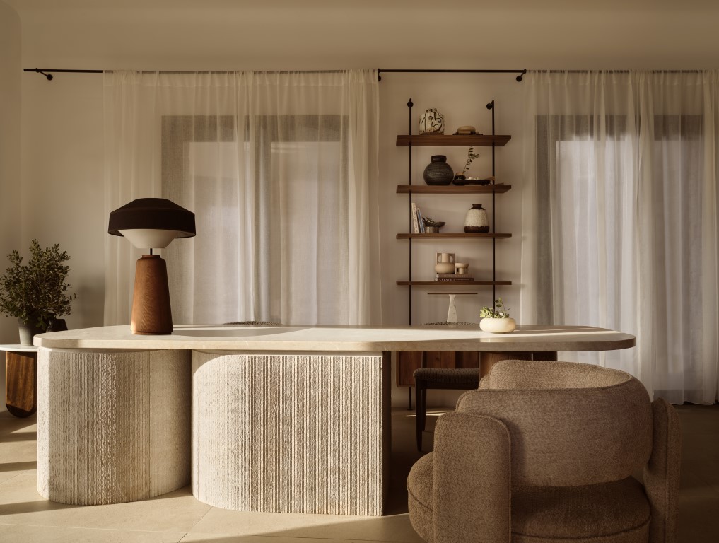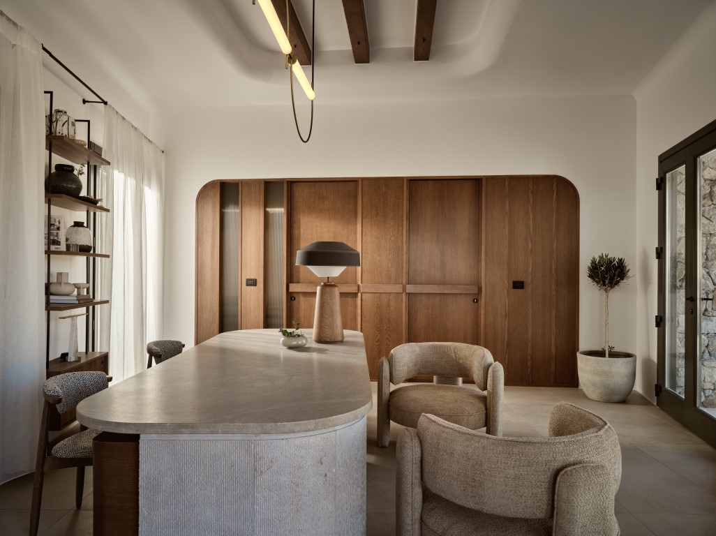 Το Anemelia Mykonos επαναπροσδιορίζει την έννοια της ελευθερίας μέσω του design, προσφέροντας μια ολιστική εμπειρία φιλοξενίας που συνδυάζει την αίσθηση της απόδρασης με τη διακριτική πολυτέλεια. Η αρχιτεκτονική προσέγγιση εστιάζει στην απλότητα, ενσωματώνοντας φυσικά υλικά και γήινες υφές για να δημιουργήσει έναν ήρεμο, σχεδόν τελετουργικό, ρυθμό παραμονής. Οι διαβαθμίσεις φωτός, οι ρέουσες συνδέσεις μεταξύ εσωτερικού και εξωτερικού χώρου και η τοπικά εμπνευσμένη παλέτα ενισχύουν την αυθεντικότητα του τόπου.